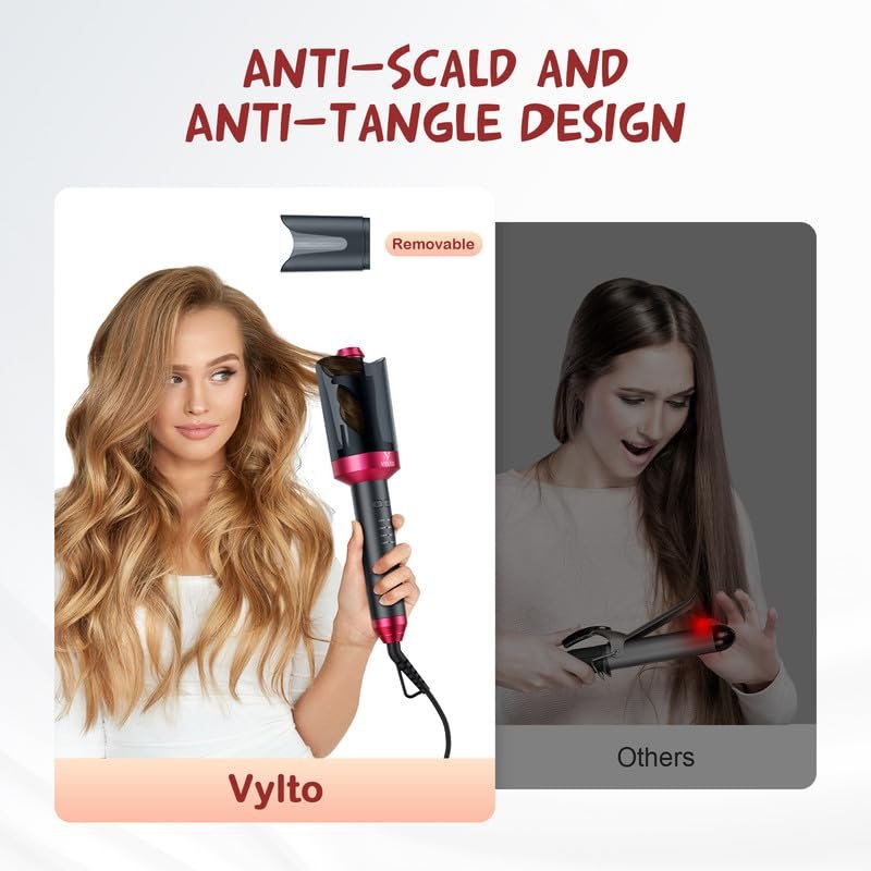 - [Intelligent Auto Hair Curler,NO Skill Need] Vylto Automatic Curling Wand"s removable cover allows you to easily clean the hair of the curling iron. The heating rod heats up quickly. There is a time reminder after curling, so you can get the hairstyle you want quickly.