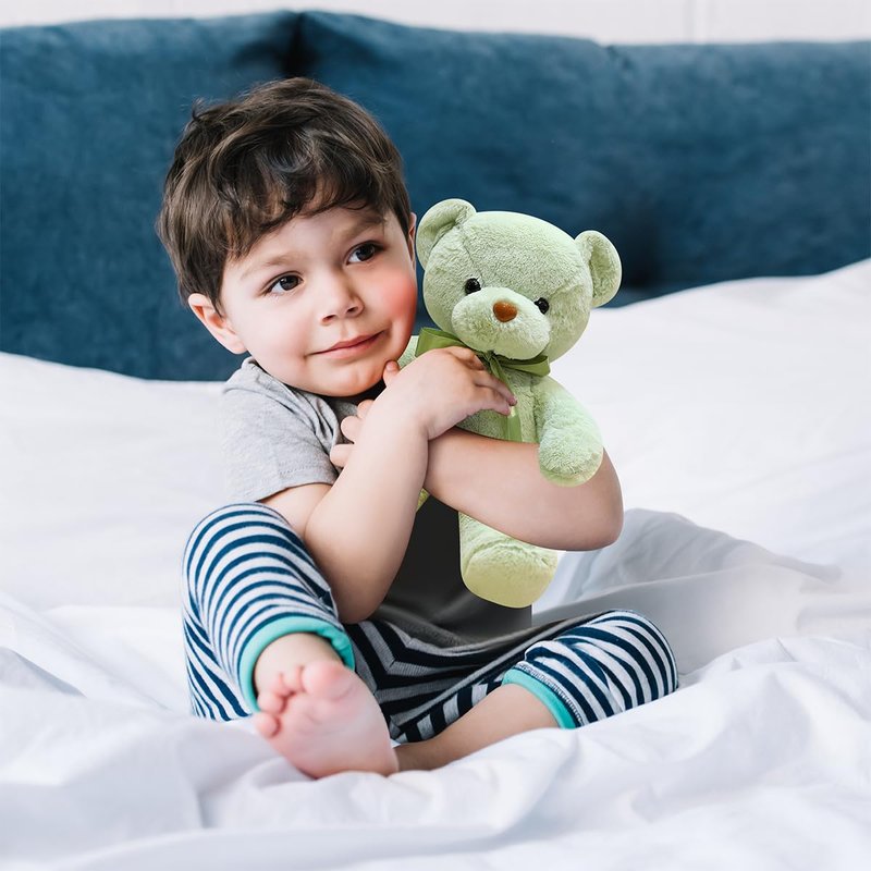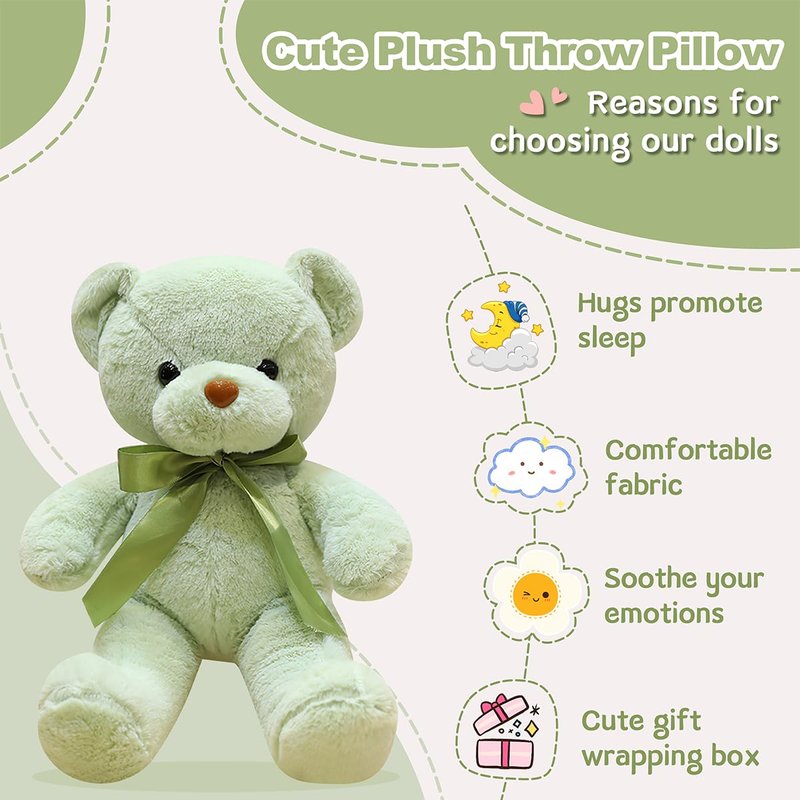 - [ Environmentally Materials ] Green adorable bears plush is filled with polypropylene cotton inside, strong rebound, fluffy and soft. The exterior is made of polyester fiber with a ribbon bow, soft and skin-friendly. Take care of your soft skin.