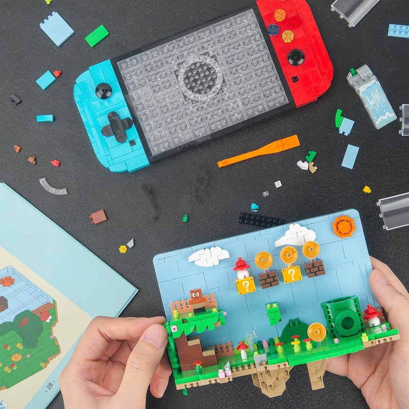 - 【Classic super game brick-built set】:The block set has 1256 pcs, including game table and game scenes:two movable models,plus a buildable sandcastle, waterfall, ladders,tree,peach’s castle, battlefield, cool mountain and lethal lava trouble.It restored famous scenes and characters in games.