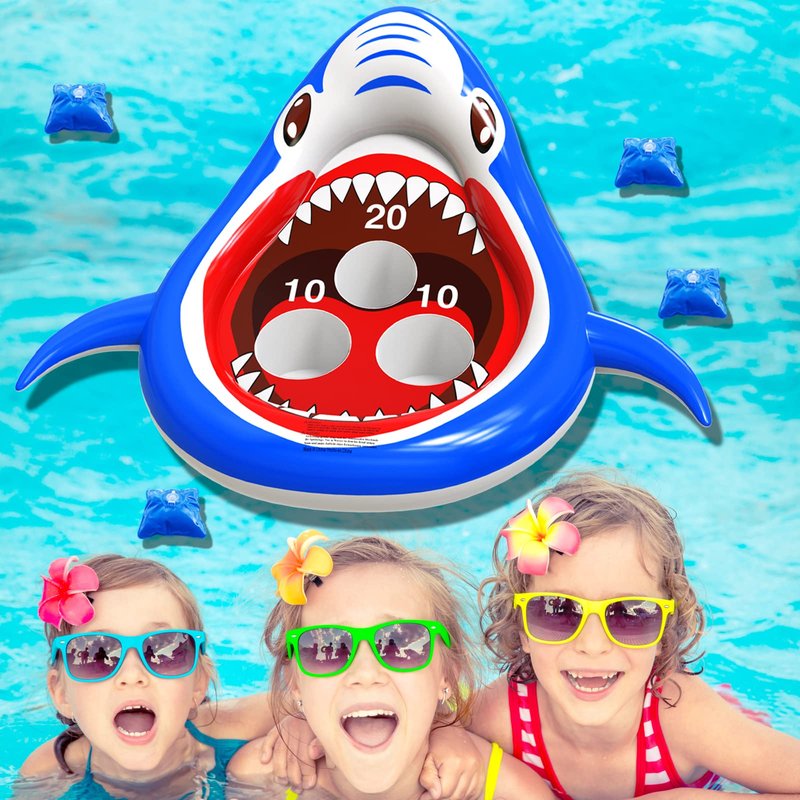 - Kids Pool Toys Set: The inflatable shark cornhole set is made from quality PVC with no air leaks or splits. The non-toxic valve ensures your child's safety. Meets US toy standards and safety tests. Suitable for kids aged 3 and up