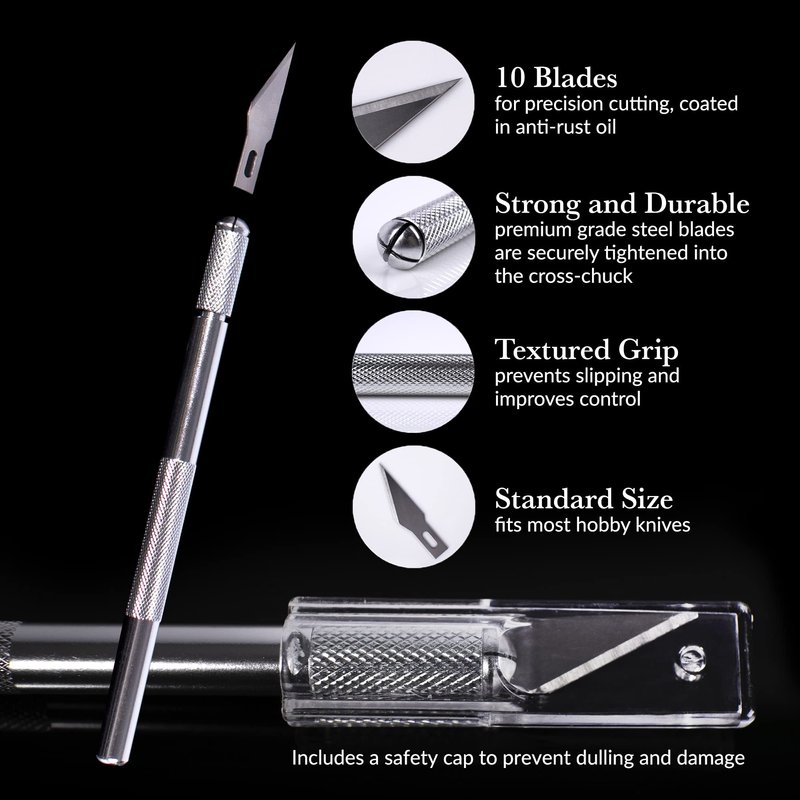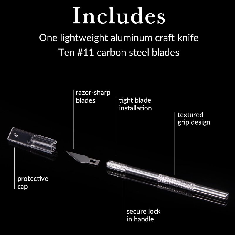 - Versatile Standard Sizing - This knife set includes 10 #11 hobby razor blades that are compatible with most craft knives. Whether using it as a model knife, leather knife, fabric knife, or paper craft knife, this exacting knife will work for any project