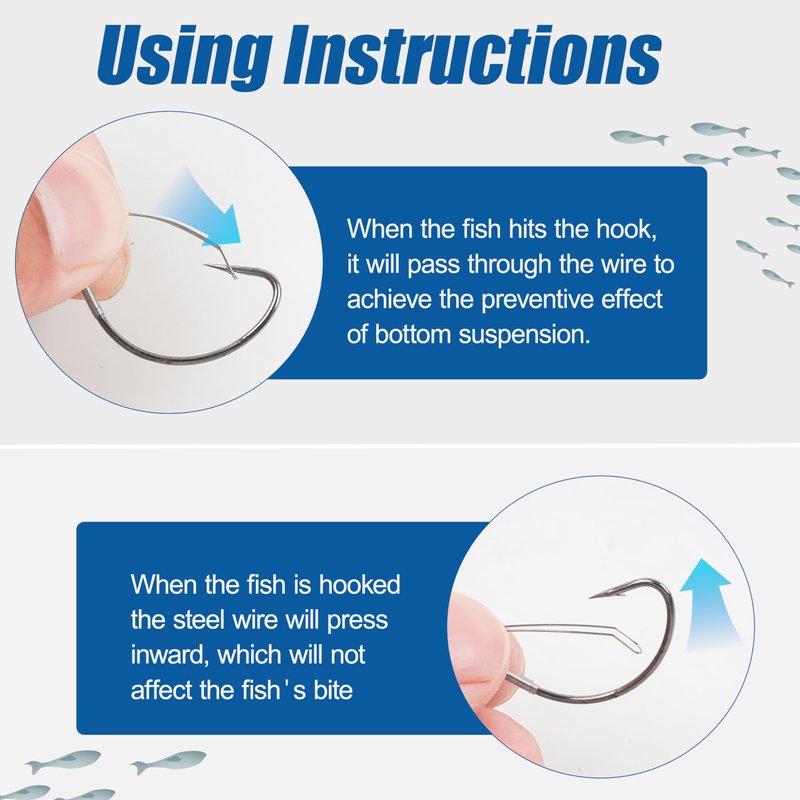 - Fishing hooks with Wire weed guard accommodates your lure snag-free, allowing you to cast under docks, into thick cover, and other places that normally cause your lure to hang-up or snag