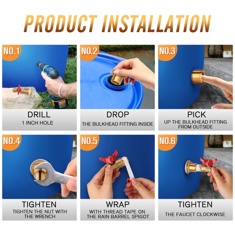 - 💧Two installation methods: Brass bulkhead fittings front mounting and back mounting. Designed for irrigation with Rain Barrel, Not for Portable Water, Not Lead Free Compliant.