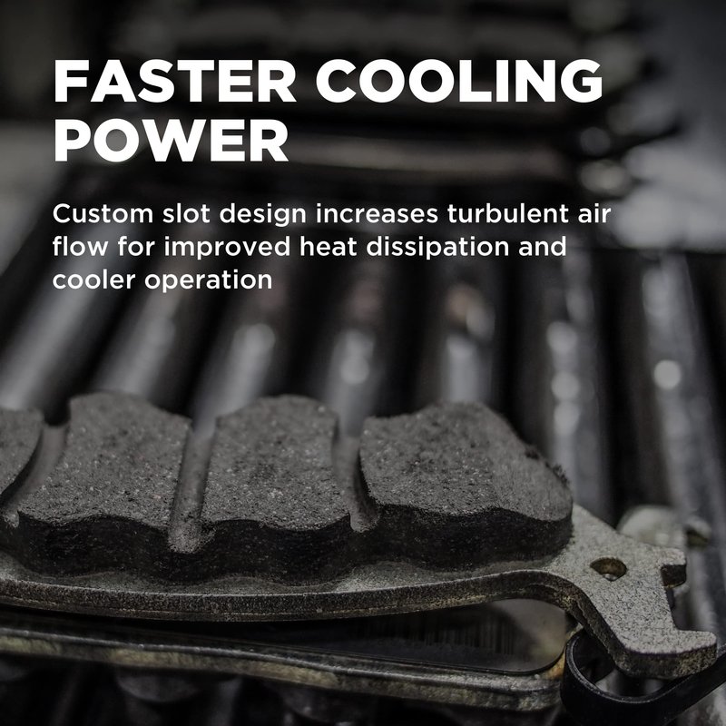 - LONGER LASTING -- Patented shape and custom slot design deliver improved braking performance, reduce rotor wear and minimize residue to increase the life of the brake pad