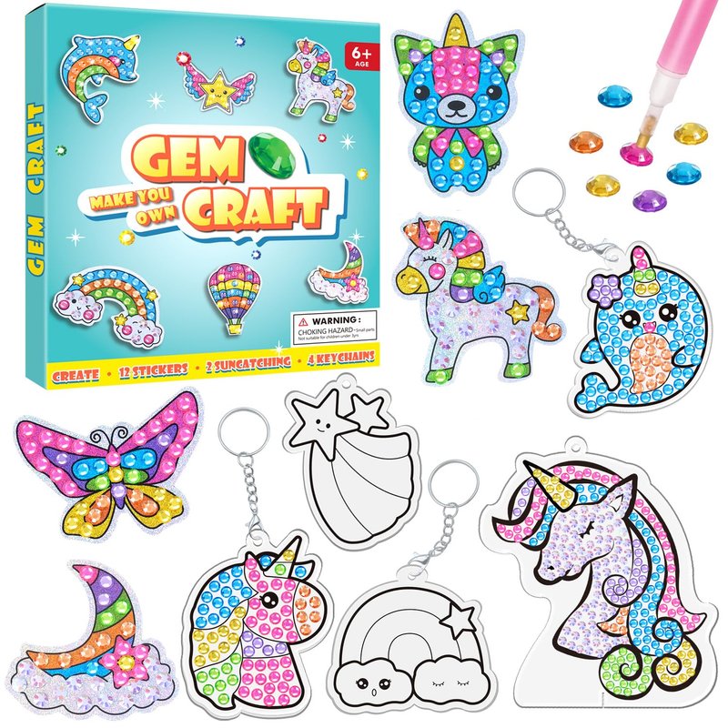 WAHFNG Gem Art, Diamond Art Kids Painting Kit -Make Your Own Stickers,Keychains & Suncatchers - Arts and Crafts for Girls and Boys Ages 6-12 - Best Gift Ideas for Age 6, 7, 8, 9, 10,11,12 Years Old