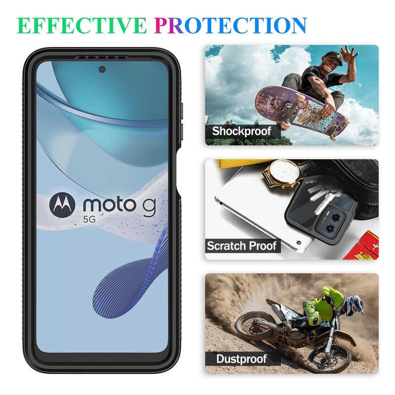 - [Drop Resistance and 360° Protection]Four Corners protect your Moto G 5G 2023, Moto G Power 5G 2023 against drops and bumpers. Built-in HD plastic screen protector, clear front and back casing provide full body protection, combination of TPU and Polycarbonate (PC) for dual shockproof.