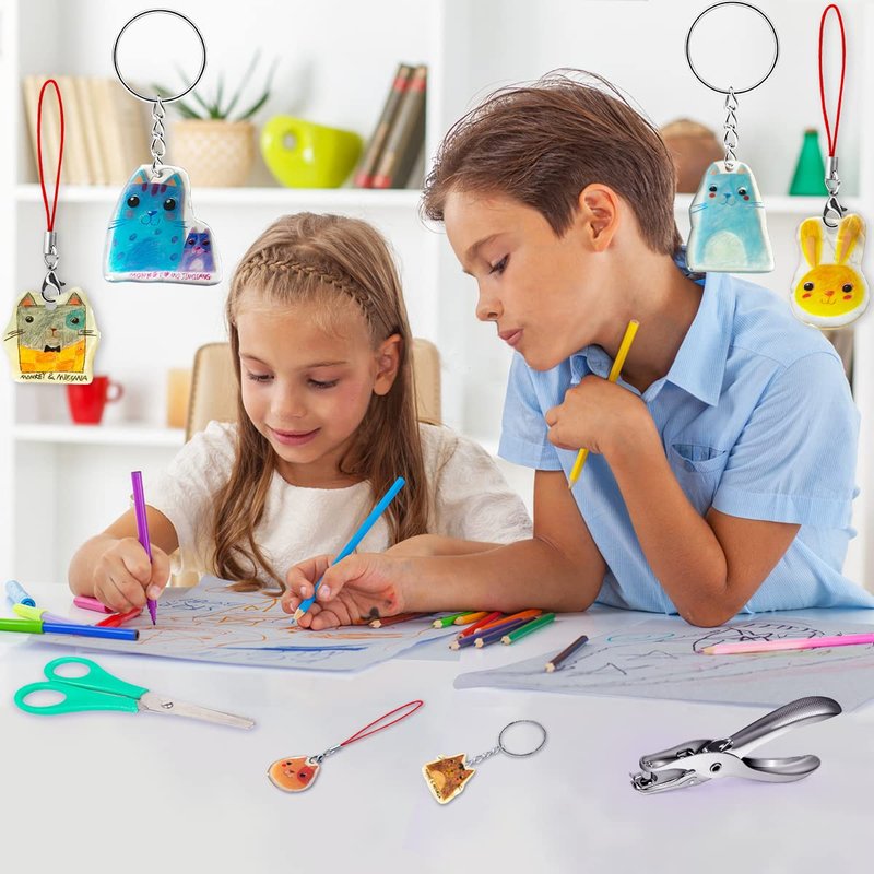 shrinky plastic sheets are easy and fun for kids and adults to DIY keychains, earrings, jewelry and other crafts. It offers them interesting and creative hands-on craft experience.
