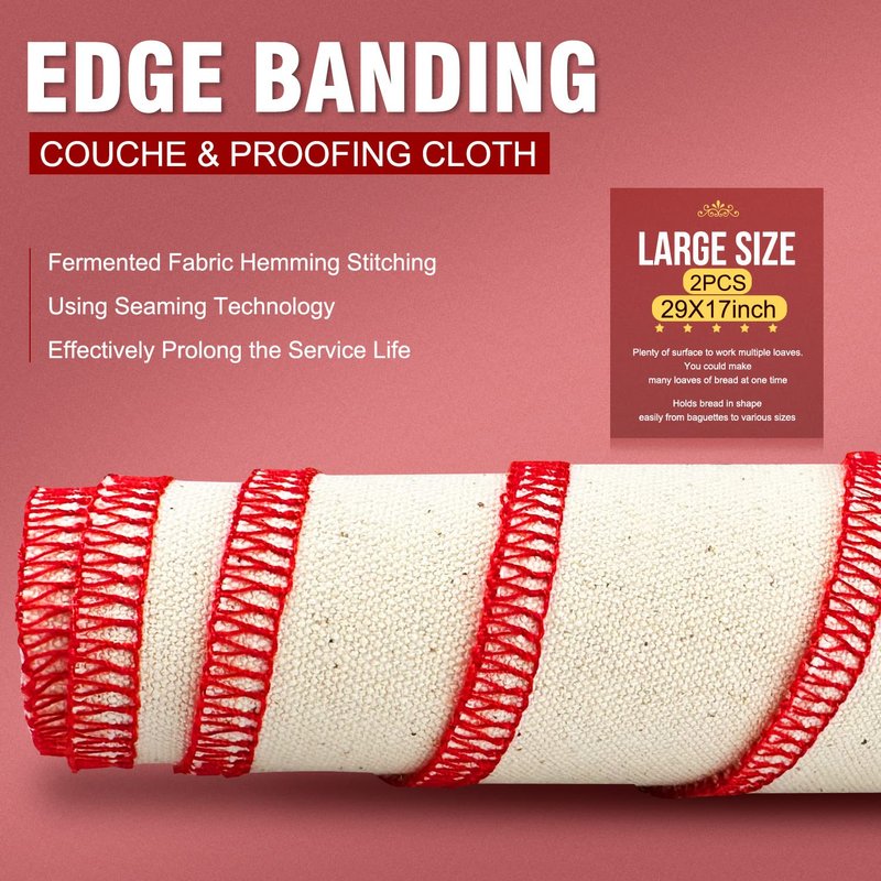 Walfos Bakers Couche and Proofing Cloth, 2PCS(29" X 17" ) 100% Cotton Fabric for Bread Dough Baking Shaping Tool for Baguettes, Loaves and Ciabatta
