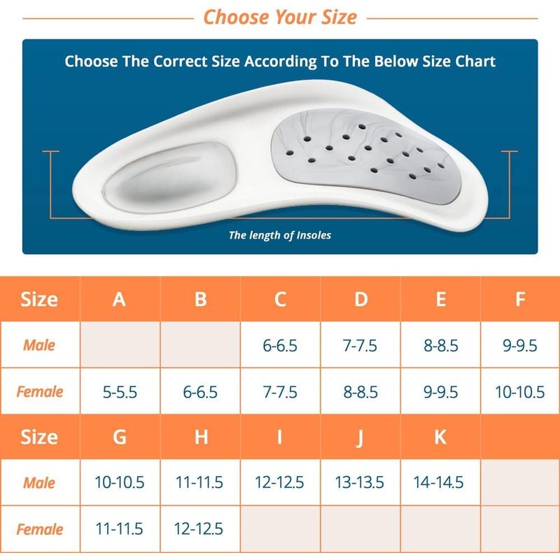- SHOE INSOLES DESIGNED AND CUSTOMIZED TO FIT YOUR FEET - 3 customizable arch inserts (low, medium, and high), as well as a 4th new REFLEXOLOGY acupressure massage insert. WALKfit PLATINUM Orthotics arch supports come in 11 sizes for both men and women. Great for sneakers, dress shoes, boots, tennis shoes, flats, and more! To begin, wear the orthotics 1 hour the first day, 2 hours the second and so on, until you can wear them comfortably all day long.