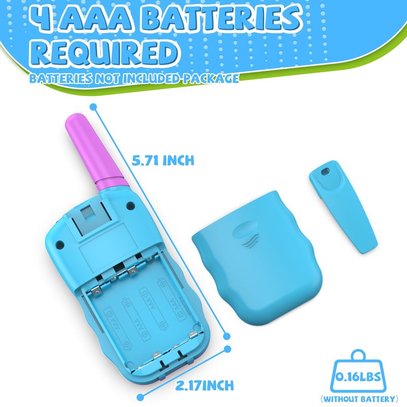 - [Ergonomic Design]- Small and lightweight, weighing only 90 grams each (with batteries inside), making them easy for kids to handle and carry. Their ergonomic design ensures a comfortable fit in children's hands. The simple push-to-talk button allows for easy operation, making them suitable for boys and girls aged 3 to 12 years old.