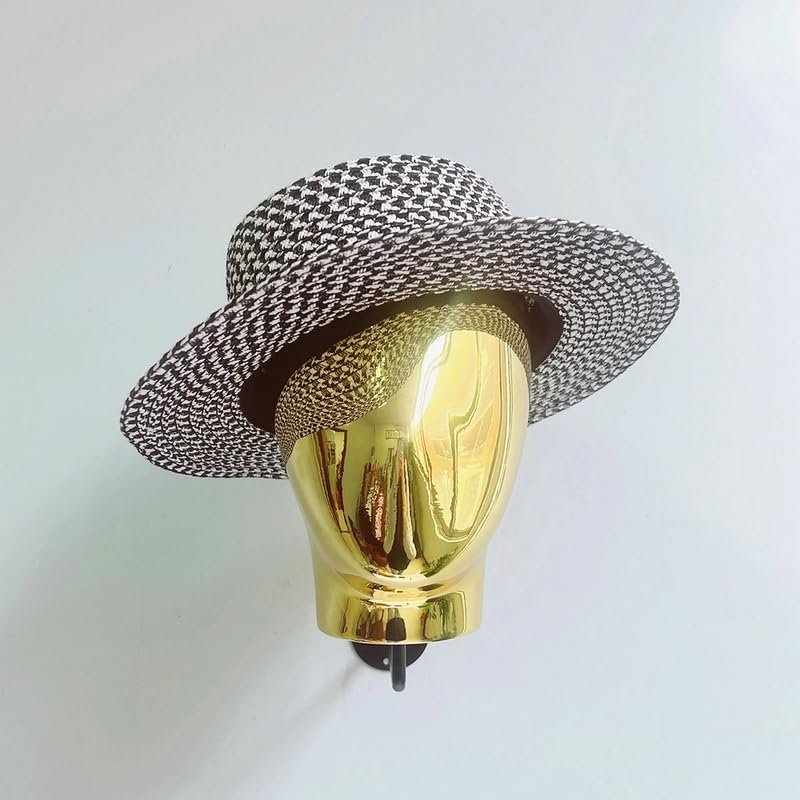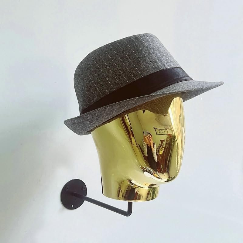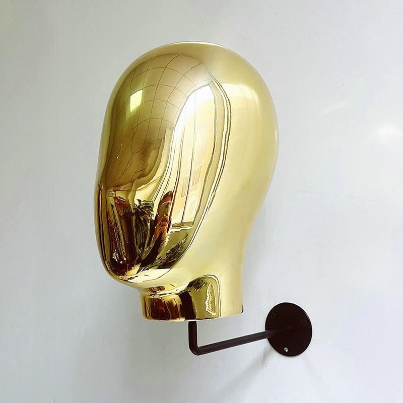 Wall Mounted Mannequin Head Wig Making Head Metal Head Wig Hat Glasses Display Hat Holder Rack Storage Wigs Show Display Stand (Gold)