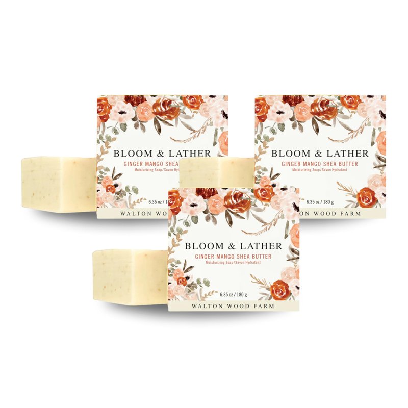 Bloom & Lather by Walton Wood Farm introduces our luxurious Island Ginger Mango Butter Soap, enriched with shea butter and mango butter, and blended with exfoliating wheat bran and cocoa bean shell.