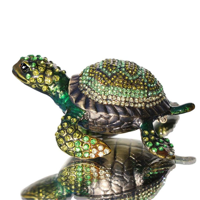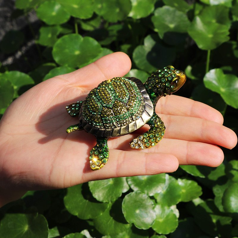 Waltz&F Diamond turtles Hinged Trinket Box Hand-painted Animal Figurine Collectible (green)