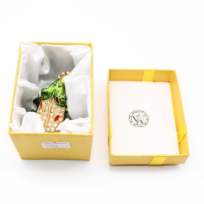 Waltz&F Kiss pearl frog Trinket Box Hinged Hand-painted Animal Figurine Collectible Ring Holder