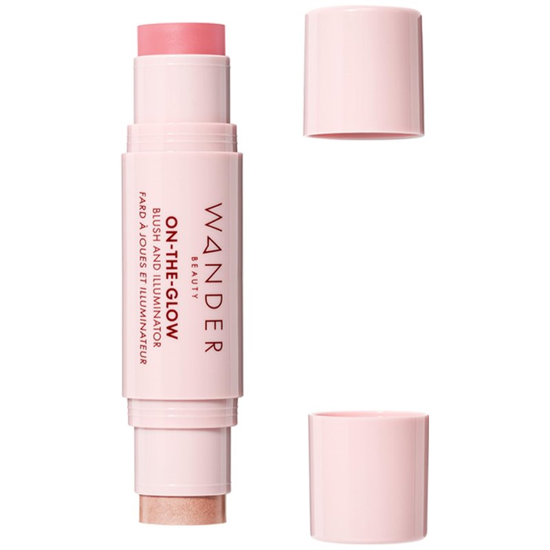 Wander Beauty On-the-Glow Blush and Illuminator - Petal Pink/Nude Glow - 7-in-1 Hydrating Cream Blush & Highlighting Stick - Stick Blush for Cheeks, Lip, & Body - Highlighter Makeup & Blush - 0.4 oz
