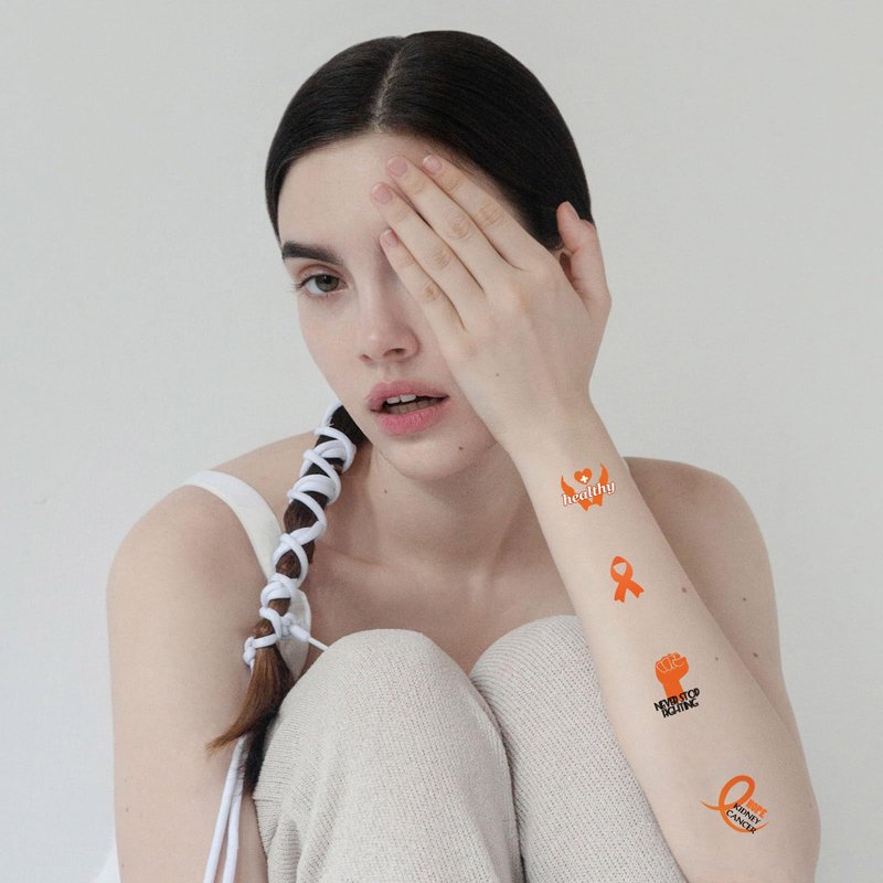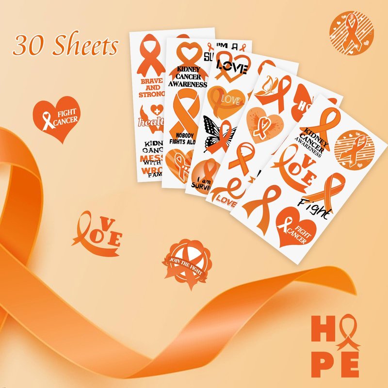 WANDIC 30 Sheets Orange Ribbon Temporary Tattoos, Leukemia Awareness Tattoo Sticker Lymphoma Kidney Cancer Awareness Stickers for Charity