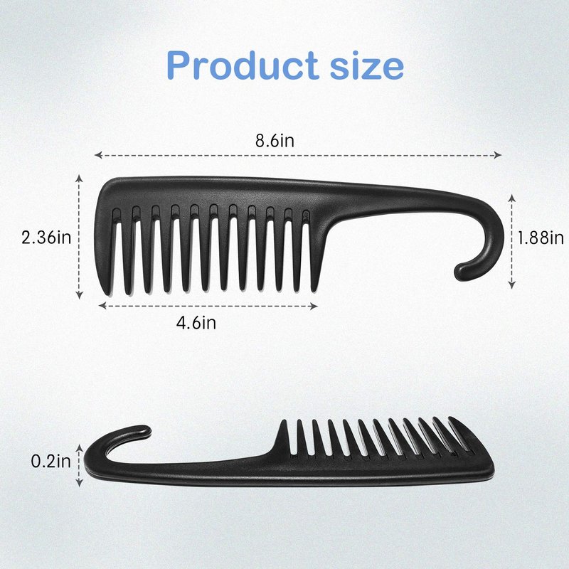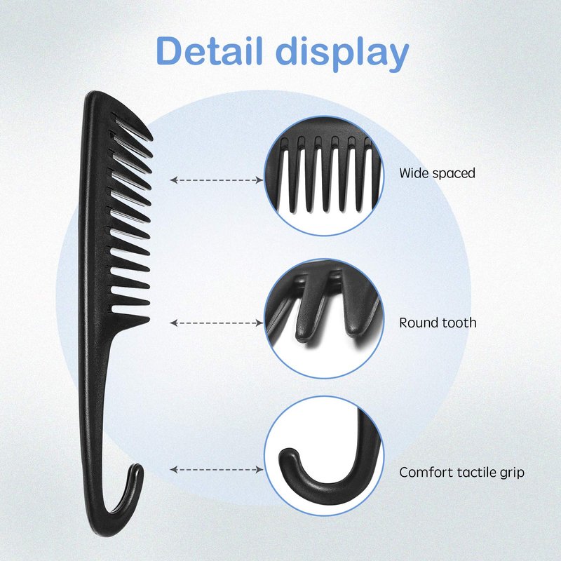 Wapodeai Wide Tooth Comb Shower Comb With Hook, Good for Curly Hair Wet Dry, Premium Tangle Free Combs Black.