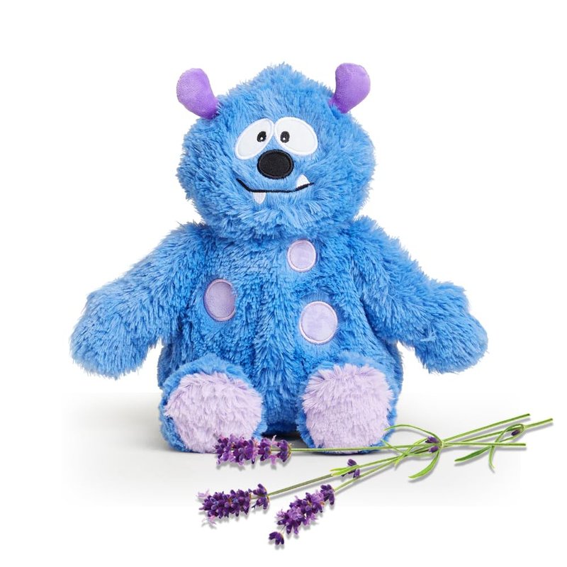 - Warmies Microwavable Stuffed Animal: Blue Monster is a snuggable, huggable, lovable weighted plush toy for all ages that can be easily heated for hours of soothing warmth and calming comfort or chilled to provide cooling relief. 13 inches tall. 2lbs.