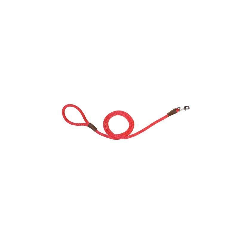 WARNER BRAND BRAIDED NYLON SNAP LEAD DOG LEASH 1/2 inch X 6 foot. This nylon rope snap lead is designed with a metal snap which allows for easy snap to a collar. Sewn handle and nickel plated ring with leather joints. The flexibility of the rope lead makes it easy to fold and carry. MADE IN USA