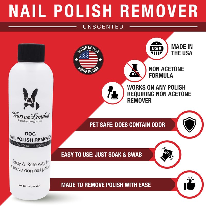- Non Acetone Formula works with any polish requiring a non acetone remover, but specifically formulated for Warren London Bottled Nail Polish and the Famous Pawdicure Dog Nail Polish Pen.
