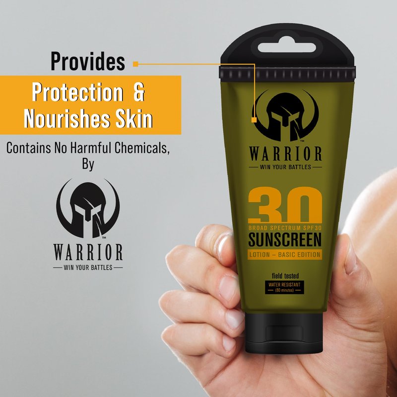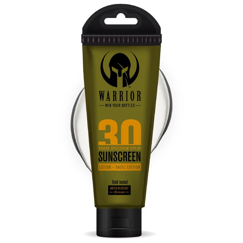 Warrior Sunscreen SPF 30 Lotion - Water & Sweat Resistant Body Lotion with SPF - TSA Compliant, Non-Mineral Formula, Camo Presentation, Biodegradable, Broad Spectrum Sunscreen SPF30 - (3 Oz)