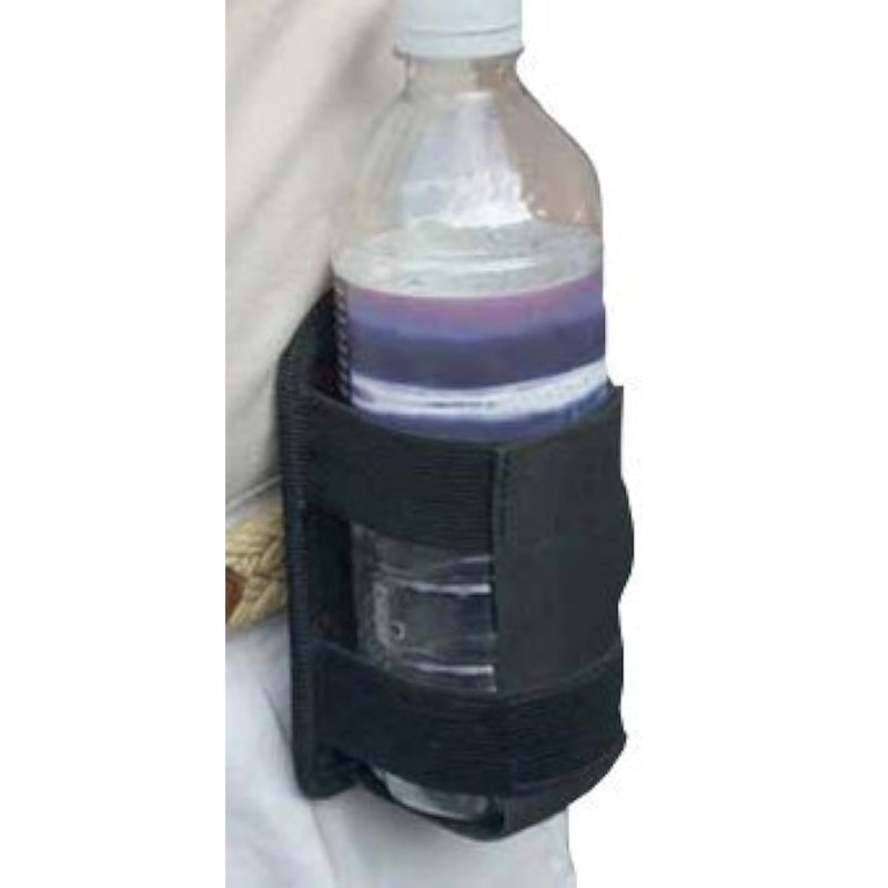 Belt Clip Water Bottle Holder. Clips on to any waistband or belt for hands-free convenience. The elastic webbing holds various size bottles. Best for 12 oz or smaller bottles. Tip, taller bottles that are full are top heavy, taking a little of water out helps balance the bottle. Ideal for walking, hiking and traveling. Small size 5 1/4 inches x 3inch, fits into any purse or pocket when not being used. Travelers carrying cameras, bags & guidebooks love having a “hands-free” water bottle holder.