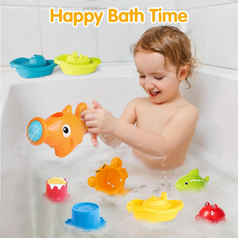- Safety & Easy Clean: Made of high quality plastic material without odor or any sharp edges.These bath toys for babies 6-12 months are lightweight and safe enough for kids to stack and tap. Bath toy boats are easy to grip. We have a leaking design that makes the bath toys dry immediately and easy to clean to ensure the toddler's safety!