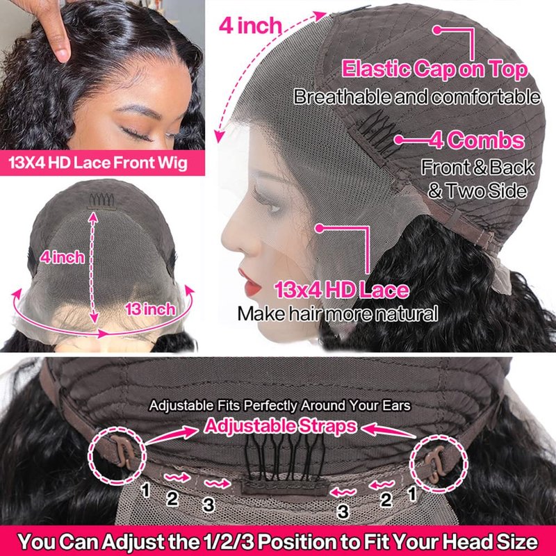 - 💎HD Transparent Lace:13x4 Water Wave Lace Front Wig,HD Transparent Swiss Lace,Adapted to All Skin Tones,Breathable and Comfortable,Pre Plucked With Baby Hair and Natural Hairline