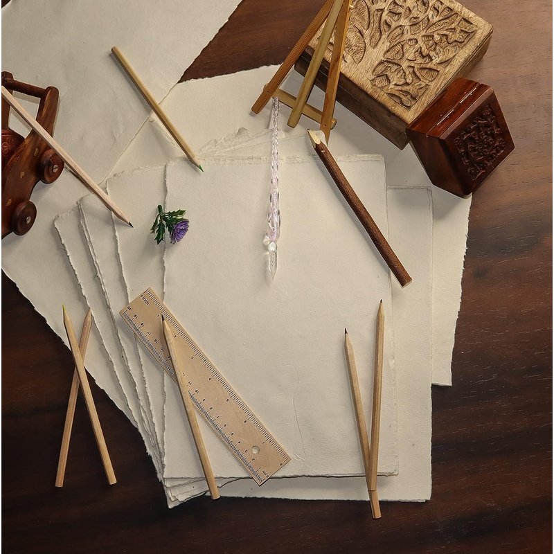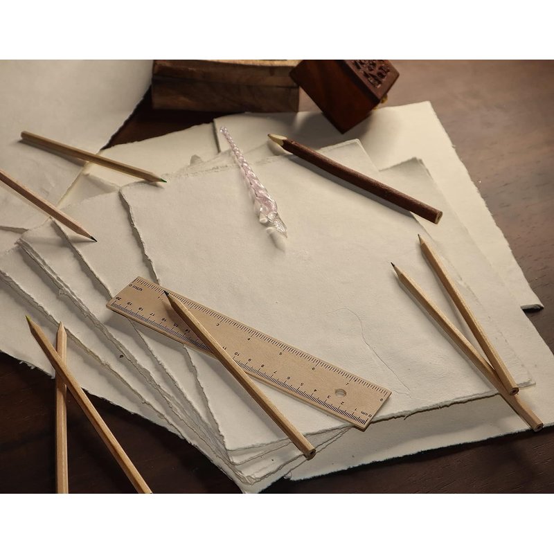 - ✔️ WRITE, DRAW, SKETCH, PAINT - These one-of-a-kind raw edge handmade paper sheets are a great alternative to traditional watercolor paper or writing paper. Bleed-through resistant and supports most media including watercolor, acrylic, gouache, ink, gel pen, marker, pencil and charcoal. Perfect for crafts, letters, invitations, or maps for hidden treasures.