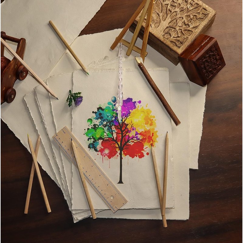 - ✔️ HANDMADE BY ARTISANS - blank 100% cotton paper sheets, hand made using traditional practices passed through generations dating back to 14th century India. Dried in the sun, this gorgeous textured paper is a timeless and inspiring alternative to ordinary paper. May also be referred to as rag paper, cotton rag paper, raw edge, rough edge or torn edge.