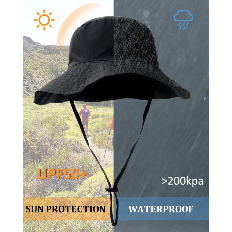 - Waterproof for the beach-The mens floppy waterproof sun bucket hat is made of premium waterproof nylon material. Soft, lightweight, waterproof, and also has UPF 50 + sun protection. The wide brim perfectly covers your face and neck from the sun's rays. The waterproof fabric prevents rain from seeping into your head.