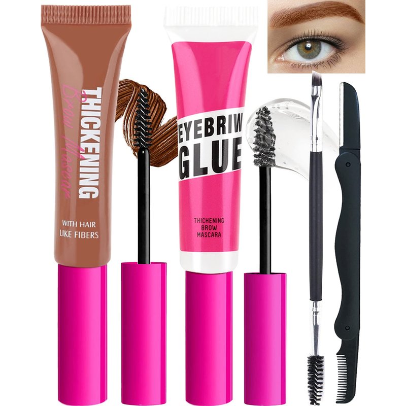 - THICKENING BROW GEL KIT - You will get 1Pcs thickening eyebrow gel,1Pcs clear setting brow gel,1 brow razor and 1 eyebrow brush. The thickening brow gel contains high-quality man-made fiber, thicken and stereotype all types of eyebrows with a natural finish that lasts up to 16 hours with this set brow mascara in 8 high-impact inclusive shades.