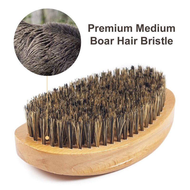 Wave Brush Medium Boar Bristles Hair brush-Designed for Thin and Normal Hair-Mens Curved Military Wave and Beard Brush-Great for 360 Waves