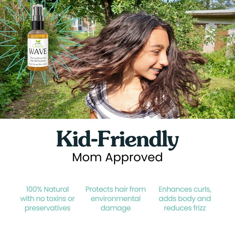 Clearly WAVE is a sulfate free hair product made with 100% natural and organic oils to protect hair from heat and damage. Our thermal protector is ideal for dry damaged hair, fine hair, thick hair, curly frizzy hair, straight hair, colored hair, keratin treated hair and normal hair. It's made in small batches in the USA and packaged in a BPA-free recyclable container because it's good for you and for the planet.
