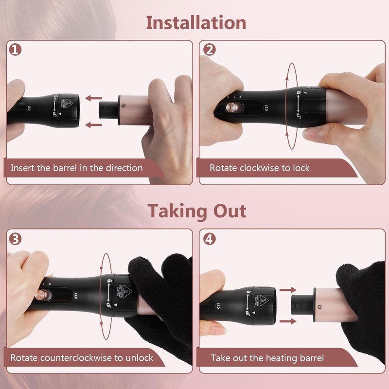 - 【Easy to Use】The hair wand curling iron is designed with a tabletop insulated stand, anti-scald top and 360° tangle-free cable design for extra safety and convenience, ensuring that your hands will not be accidentally burned. Additionally comes with 1 heat-resistant glove and 2 clips, multiple protections that can guarantee you more peace of mind, and convenience during use