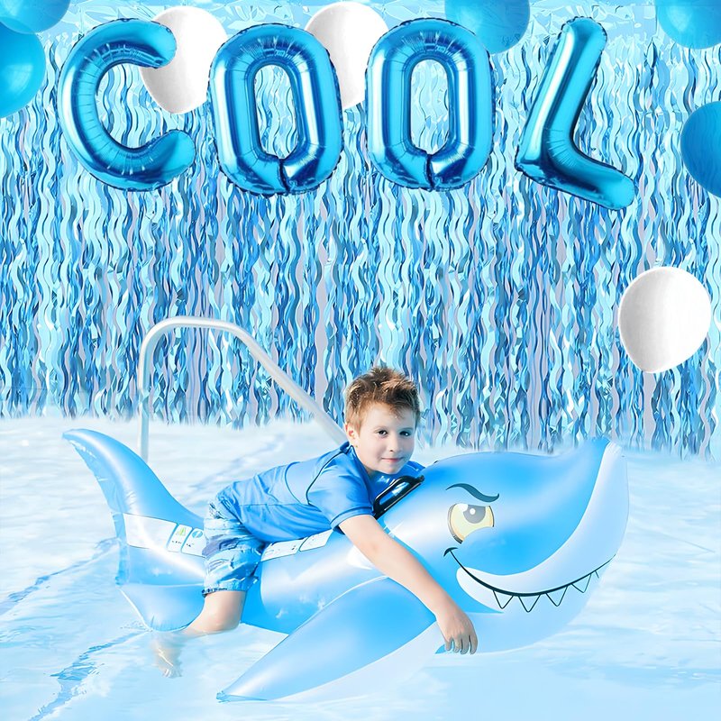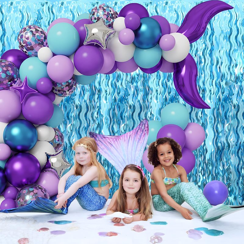 - SHINNY WAVY BACKDROP:3 Pack teal blue curtains backdrop are perfect backdrop for mermaid birthday party decorations,under the sea party decorations,baby shark birthday decoations