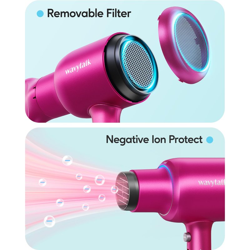 Wavytalk Negative Ions Hair Dryer Professional 1875 Watt Blow Dryer with Concentrator Diffuser and Nozzle Comb Fast Drying Light and Quiet with Ceramic Technology for All Hair Types Hot Pink