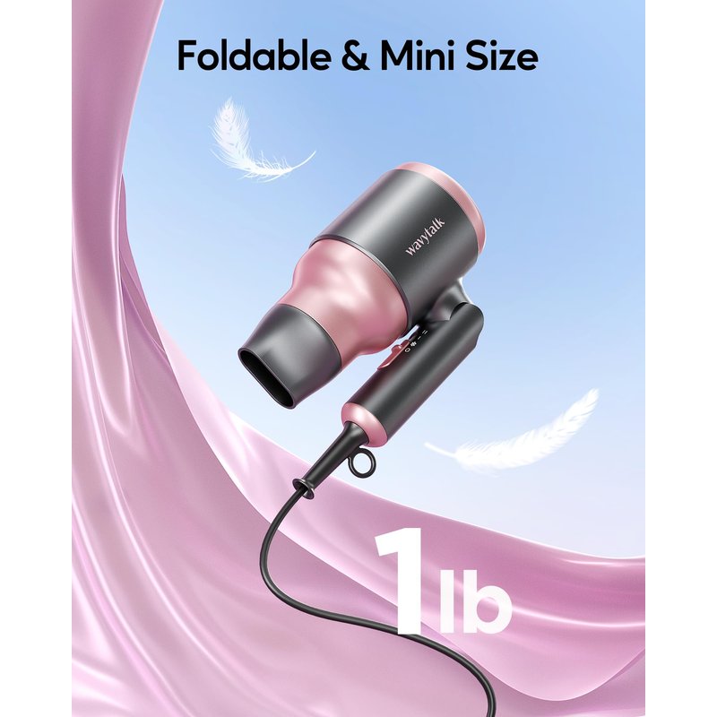 - Lightweight and Compact: Weighing 1lb, this blow dryer boasts a distinctive compact contour design with a volume of about half that of a typical hair dryer. Its collapsible design makes it the epitome of convenience, effortlessly fitting into your travel essentials.This travel blow dryer's compact proportions and gentle presence make it the ultimate companion for those seeking a portable, yet powerful, styling experience