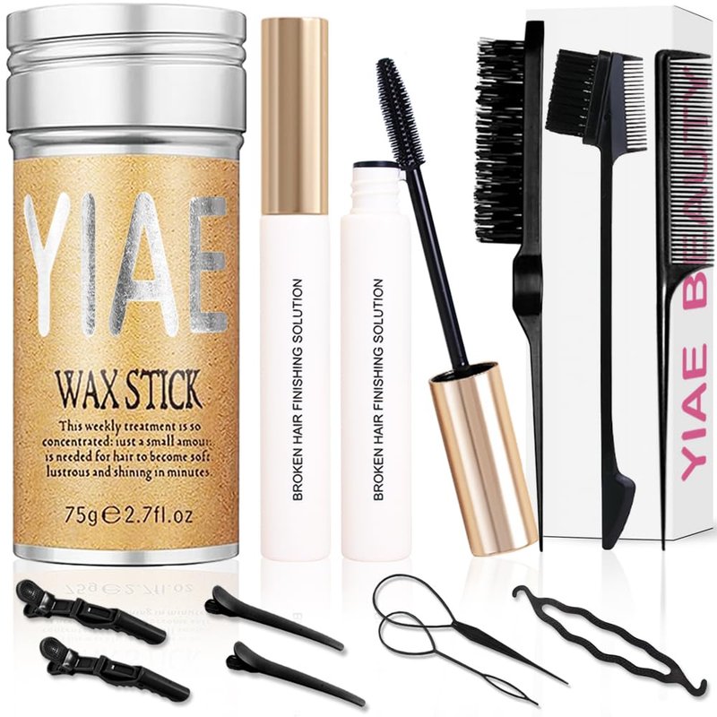 YIAE Hair Wax Stick and Broken Hair Finishing Stick with Comb & Hair Clips & Hair Braiding Set, Non-greasy Pomade Slick Stick for Flyaways Edge Frizz Hair