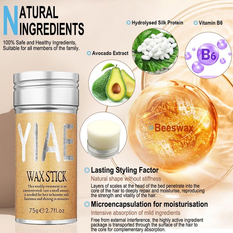 - 【Mild & Healthy & Natural】 YIAE hair slick stick enriched with Avocado Extract, Hydrolysed Silk Protein, Vitamin B6, Beeswax and other nutrients, it is gentle and safe for all hair types. Natural non-irritating, does not hurt hair, does not hurt the scalp, no residue, alse suitable for child and man. YIAE hair wax womens are soft and delicate in texture, easy to absorb, it's not greasy or oily at all