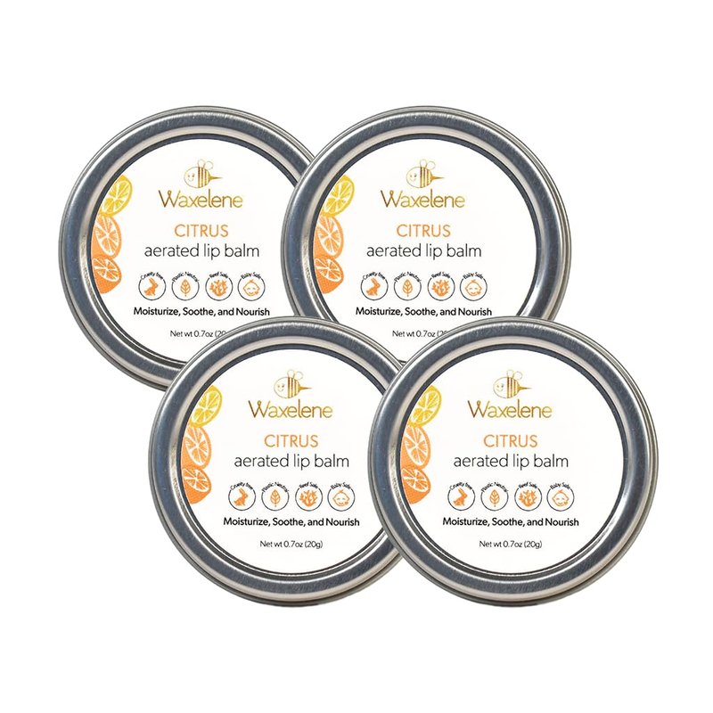 Waxelene Citrus Aerated Lip Balm Tin 4 Piece, Best Lip Balm Ever Organic Multipurpose Ointment Baby Eczema Dry Sensitive Skin Chapped Lips Moisturizer