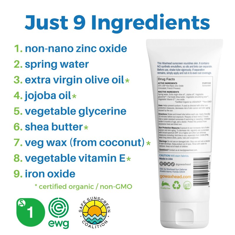 Best Vegan Sunscreen for Face. Rated 1 Mineral Sunscreen Tinted Moisturizer With SPF Tinted Sunscreen For Face Protector Solar Para La Cara Tinted Sunscreen BB Cream Tinted Moisturizer With SPF Mineral Sunscreen Face Sunscreen SPF 30 Tinted Mineral Sunscreen For Face Tinted Face Sunscreen Tinted Sunscreen by Environmental Working Group. Easy to dot, spread and rub on face. See exactly where you’re applying it. Goes on smoothly + Non-greasy + Hypoallergenic, Good for sunscreen pregnancy. Use as a daily tinted moisturizer. True broad spectrum from 25% non-nano uncoated zinc oxide. Zinc oxide sunscreen face. Completely free of toxins + petrochemicals (NO oxybenzone) Baby safe + Reef safe + Biodegradable + Cruelty free. Made with only certified organic + mineral ingredients. Face sunscreen with zinc oxide. Made in small batches, quantities are limited Uncommonly Safe Mineral Face Sunscreen and tinted facial sunscreen. Developed by a holistic biochemist, our mineral sunscreen tinted zinc oxide sunscreens are purely beneficial for humans and our planet, using only certified organic and superior quality tinted mineral sunscreen for face ingredients, our pregnancy sunscreen, tinted facial sunscreens are natural, reef safe, kid safe, baby safe, cruelty free, biodegradable and completely free of toxins, allergens and petrochemicals (like oxybenzone). This tinted sunscreen mineral is proudly made in the USA. Uncommonly Effective zinc oxide mineral sunscreen. Thicker than common tinted SPF lotions, a little goes a long way and delivers the longest lasting, most comprehensive UV spectrum protection available and yet perfect for sensitive skin and eczema. Why Waxhead? We are thoughtfully committed to health, sustainable practices, the environment and sunscreen biodegradable. We are an uncommon skincare company driven by holistic science and grounded in authenticity and sustainability. Blending modern science + old school sense, we design eco-friendly tools to help humans play in the sun without worrying about skin cancer or toxins.