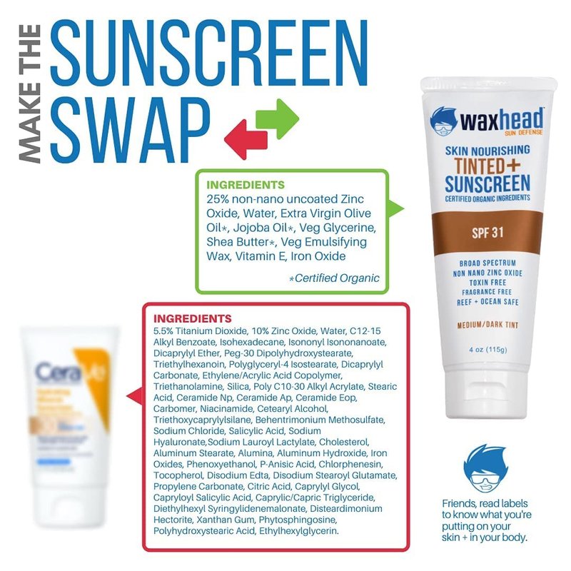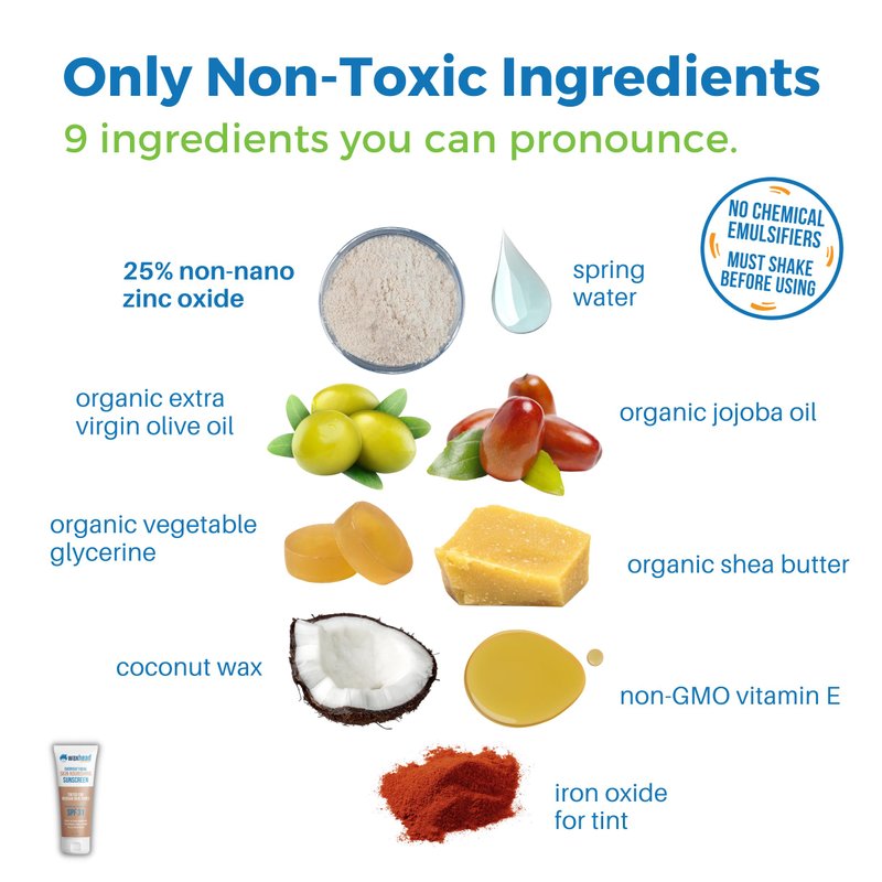Best Vegan Sunscreen for Face. Rated 1 zinc sunscreen face by Environmental Working Group in EWG Sunscreen Guide. Easy to dot, spread and rub on face. Bloqueador solar facial con color. See exactly where you’re applying it. Goes on smoothly + Non-greasy + Hypoallergenic, Good for sunscreen pregnancy. Use as a daily tinted moisturizer or tinted spf moisturizer for face. True broad spectrum from 25% non-nano uncoated zinc oxide. Zinc oxide sunscreen face. Completely free of toxins + petrochemicals (NO oxybenzone) Baby safe + Reef safe + Biodegradable + Cruelty free. Protectores solares y bronceadores para piel. Made with only certified organic + mineral ingredients. Face sunscreen with zinc oxide. Made in small batches, quantities are limited Uncommonly Safe Mineral Face Sunscreen and tinted facial sunscreen (protector solar facial con color). Developed by a holistic biochemist, our mineral sunscreen tinted zinc oxide sunscreens are purely beneficial for humans and our planet, using only certified organic and superior quality tinted mineral sunscreen for face ingredients, our pregnancy sunscreen, tinted facial sunscreens are natural, reef safe, kid safe, baby safe, cruelty free, biodegradable and completely free of toxins, allergens and petrochemicals (like oxybenzone). This tinted sunscreen mineral is proudly made in the USA. Uncommonly Effective zinc oxide mineral sunscreen. Thicker than common tinted SPF lotions, a little goes a long way and delivers the longest lasting, most comprehensive UV spectrum protection available and yet perfect for sensitive skin, eczema and tinted sunscreen for face. Why Waxhead? We are thoughtfully committed to health, sustainable practices, the environment and sunscreen biodegradable. We are an uncommon skincare company driven by holistic science and grounded in authenticity and sustainability.