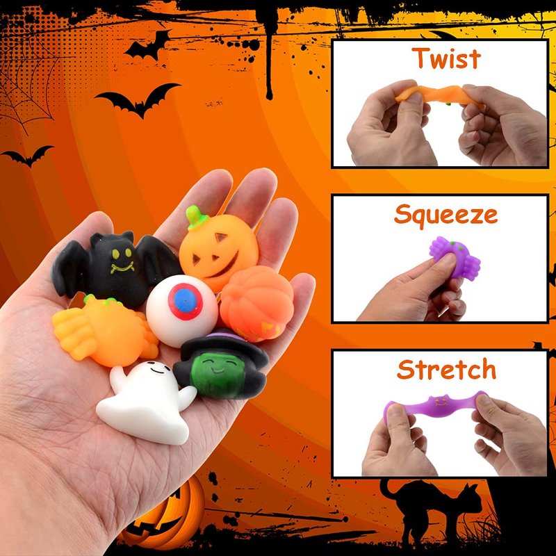 - 【Perfect Halloween Party Favors】:Give your kids as 2024 Halloween gifts. Our Halloween-themed squishies toys with bright color will be sure to spark your Halloween party. Perfect for Halloween Party Favor, Trick or Treat Handouts, Halloween Party Gift Goody Bag Fillers.