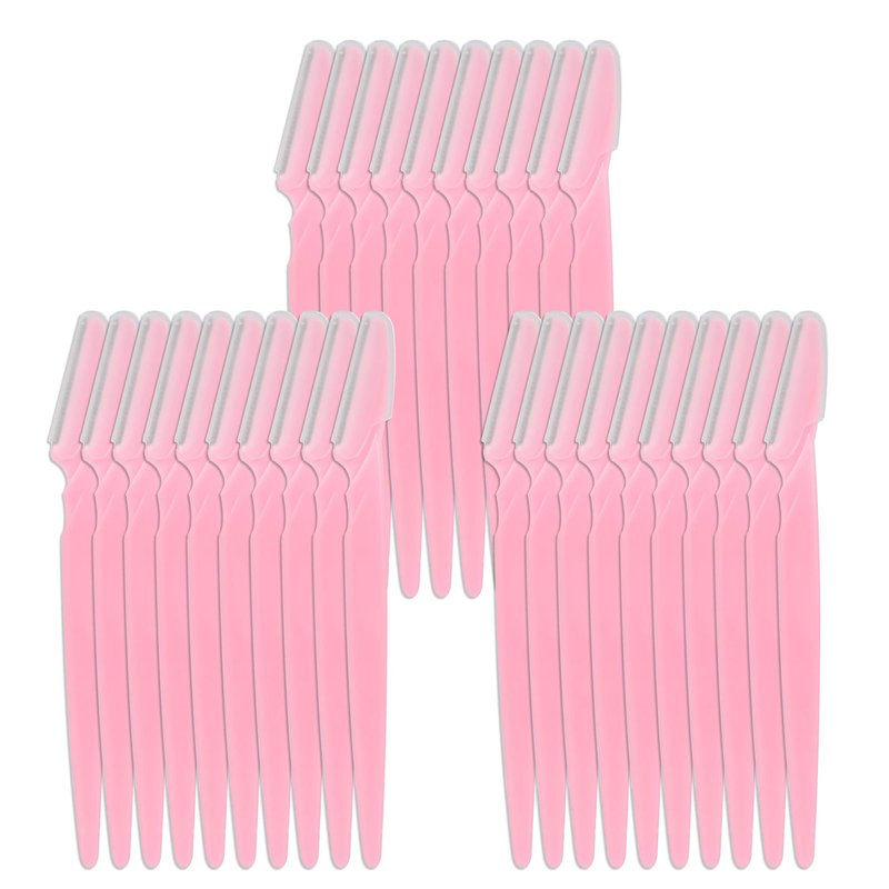 Specifications: Color: pink Material: ABS and stainless steel Package includes: 30 x eyebrow razors Comfortable size, easy to use Ideal for men and women, remove any unwanted hair on your face. Makeup and Skin Care will go on much more smoothly Warning:Keep out of reach of children, and we suggest you to use this eyebrow razor every 5-6 days to maintain a perfect eyebrow. Pretty eyebrow should never be missed to create a fresh and perfect makeup