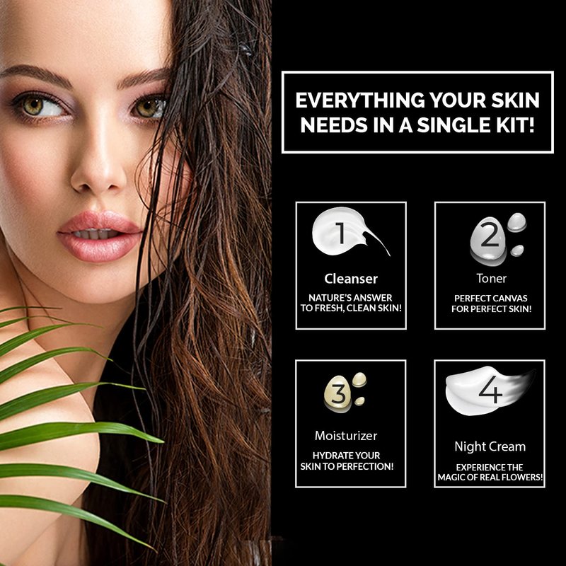 WBM Skincare Beauty Kit -Facial Cleanser & Facial Moisturizer for Sensitive Skin, Witch Hazel Facial Toner with Aloe Vera Formula, Anti-Aging Night Cream for Daily Cleansing & Refreshing Skin