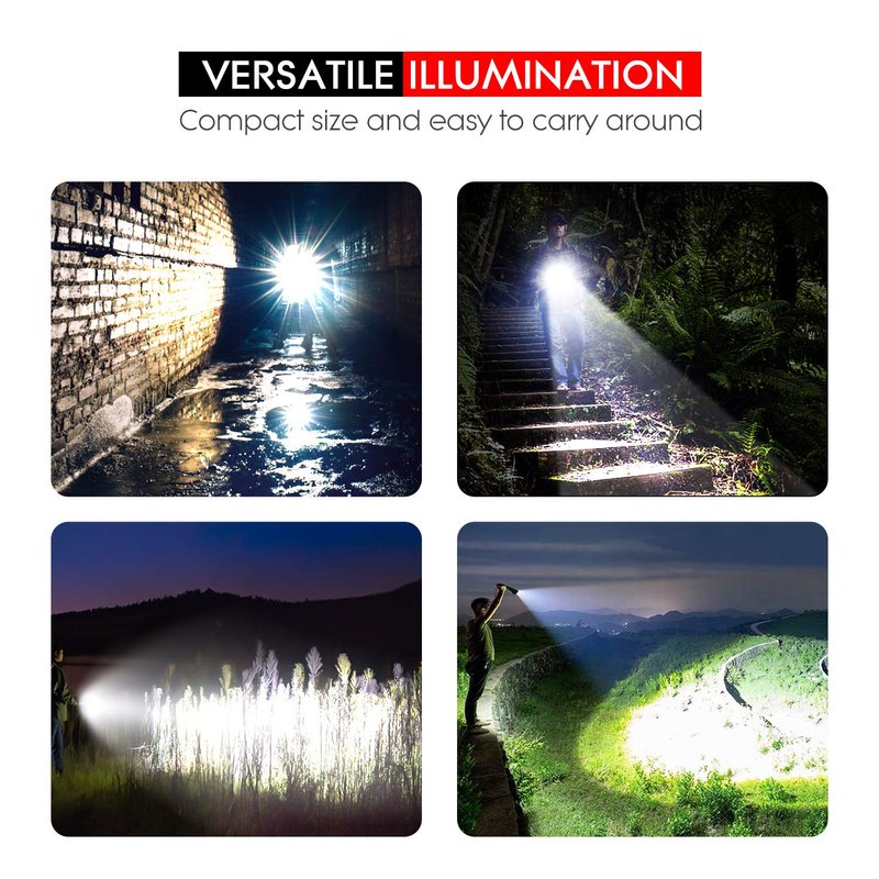 - 【3 MODES & ZOOMABLE】 Simply rotating this flash light in or out for a spot light or as flood light; It features only 3 light modes (High / Low / Strobe) which effectively reduces the trouble of switching 5 modes. All for the best using experience!