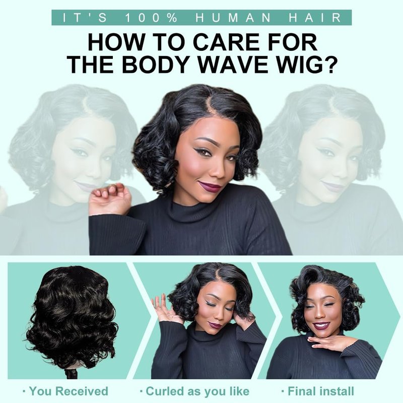 - Body Wave Lace Front Wigs Package: 4x4 Glueless Bob Wig Human Hair Wig With Pretty Gifts ( Wig Caps + 1 Pair of 3D Eye Lashes+Pretty Nail Stickers )