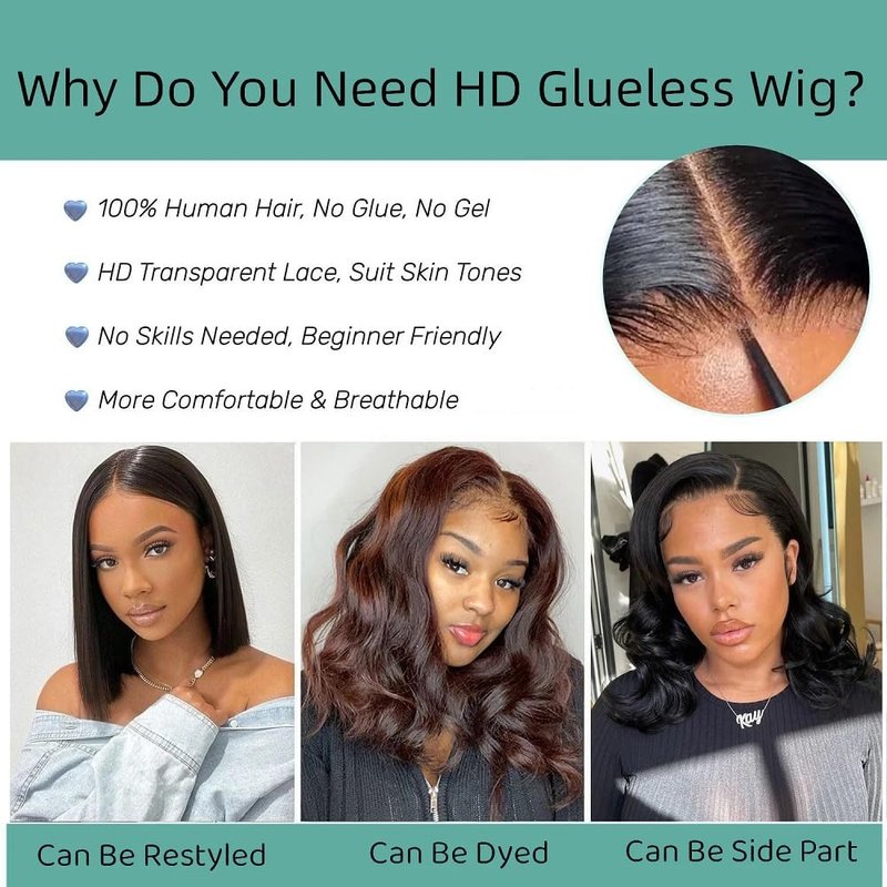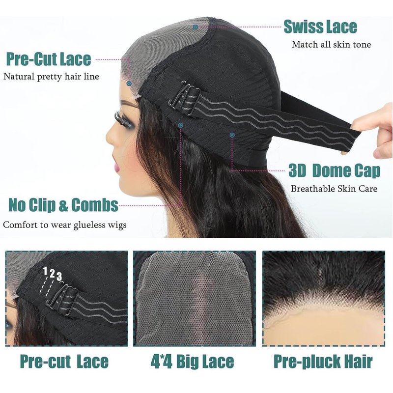 - Wear and Go Glueless Wig Advantage: Pre Cut Lace, No Glue. Can Be Weared within 15s No Skills Needed,Beginner-Friendly. Easy to wear, Elastic Design, not Easy to Fall off, Suitable for more People. Give you a Perfect Morning