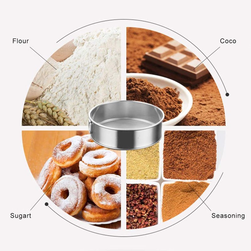 * Perfect size for making big cakes, wedding cake, birthday cake, baby shower cake, etc. With 8 inch diameter, you can powder a big volume of flour or sugar, more efficient.